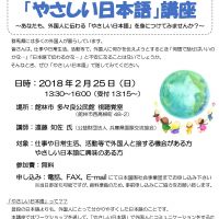 2018年2月25日(日)、群馬県館林市において「『やさしい日本語』講座 ~ あなたも、外国人に伝わる『やさしい日本語』を身につけてみませんか?~」を開催しました。 『やさしい日本語』とは、普段の日本語よりも、外国籍住民 …